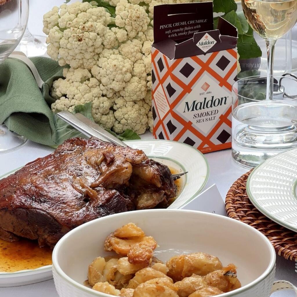 - In a large bowl whisk together mustard, oil, Greek spice mix and 1 tablespoon of Maldon Sea Salt flakes. Add the lamb to the marinate and coat completely. Place into the fridge to marinate overnight.