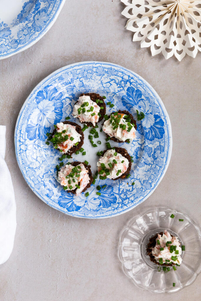 Elegante, små hapser med blød laksemousse med et frisk pust af citron, sprøde urter og et strejf af Maldon Salt serveret på ristet rugbrød. De er perfekte som appetitvækkere til julebordet, nytårsfesten eller enhver anden hyggelig sammenkomst, hvor du vil lægge ud med en lille, luksuriøs mundfuld.