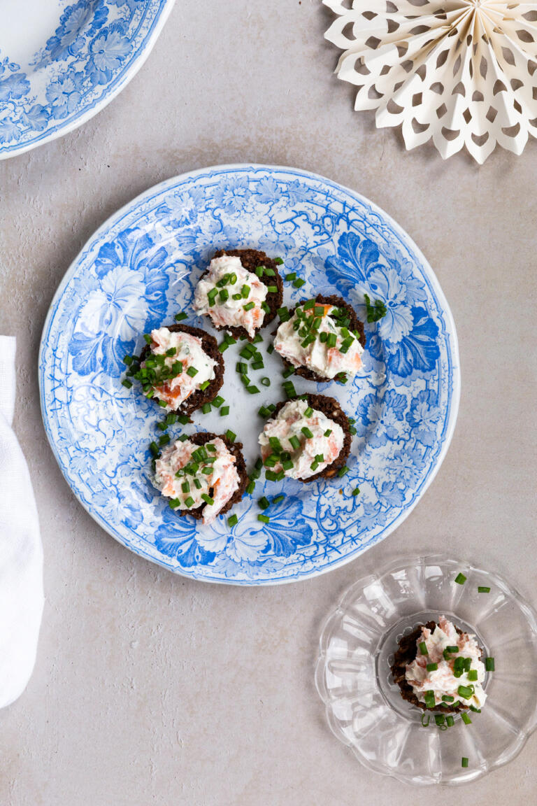 Laksemousse på rugbrødshapsere