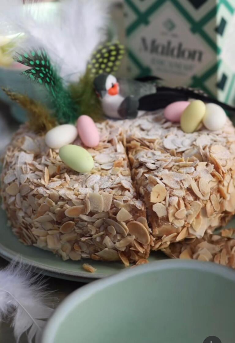 Mona de Pascua con praliné y escamas de sal